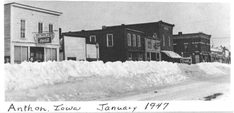PHOTO #39: Main Street of Anthon, Iowa -winter of 1947. The Anthon Cafe is where the Heritage Bank building (area) is setting today, 2004. THANK YOU HELEN FOR SHARING THESE NEAT PICTURES!