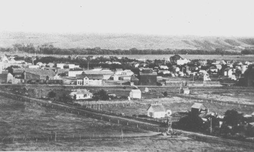 Photo #37: View of Anthon Iowa from the Arnold Farm; Circa: 1924. The Petersen family owns the old Arnold Farm at this time (2004). Matt and Rosie Petersen and sons live on the farm at this time, July 2004. Jay Arnold lives on the eastern 11 acres of that property (2004). The Arnold family came to the Anthon area around 1880.
