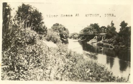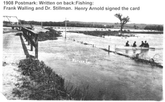 photo #29:Postcard marked 1908. Written on the back is says: Fishing: Frank Walling, Dr. Stillman. Henry Arnold signed the card. The Walling's and Arnold's have been long standing members of the Anthon community for well over 100 years. We still have Walling's and Arnold's that make Anthon their home today. It looks like the river was a bit out of it's banks here!