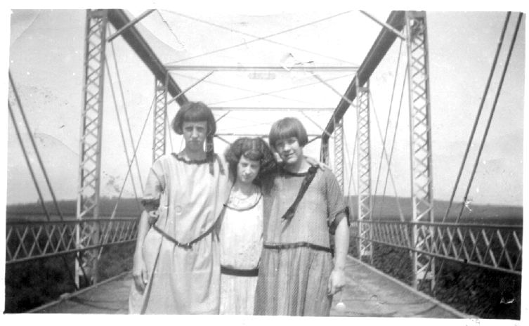 Photo #40: Wilma (Dicus) Hayworth, mother of Ron Hayworth is the girl on the right-hand side of the photo. Circa: 1921. Other two girls are unidentified. Bridge is around Anthon but specific location unknown. Thank you Jerane and Ron Hayworth for sharing this neat photo!
