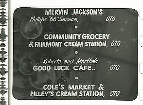 Photo 1: Mervin Jackson Sinclair Station at Oto, Iowa Tire Sale Ad. Believed to be circa: Late 1920's early 1930's (going by the tire sizes in the ad itself.) Mervin Jackson was in business for 40 years. His station was located where Drea's gas station is located today. If only we could buy good tires for these prices now! Thank you Marvin Buettner for sharing.