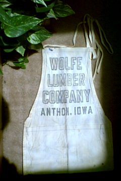 photo #33:An apron from the A. L. Wolfe Lumber Co. shared with us from A. L. Wolfe's Grandson; Frank Wolfe and his wife Susan.